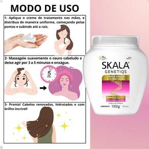 O Creme de Tratamento Skala Genetiqs Força, Brilho e Hidratação é uma máscara capilar desenvolvida para proporcionar um cuidado intensivo aos fios, promovendo força, brilho e hidratação profunda. Formulado com ativos de alta performance, ele age de forma eficaz para fortalecer a estrutura do cabelo, reduzir a quebra e restaurar o brilho natural. Sua textura cremosa facilita a aplicação, deixando os fios mais macios e hidratados. Ideal para cabelos secos, danificados ou opacos, o tratamento oferece resultados visíveis desde a primeira aplicação, devolvendo vitalidade e aparência saudável aos cabelos. O pote de 1000g oferece uma quantidade generosa, tornando-o perfeito para uso contínuo. A linha Skala Genetiqs Força, Brilho e Hidratação cria um filme de proteção contra agressões externas, restaurando a resistência capilar e valorizando a genética dos seus cabelos. A solução perfeita para a revitalização das raiz às pontas.