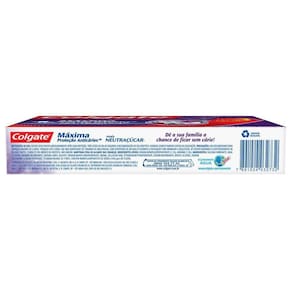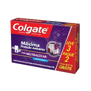 A pasta de dente Colgate Máxima Proteção Anticárie Neutraçúcar neutraliza os ácidos do açúcar diretamente na placa bacteriana, combatendo as cáries. Também contém flúor e cálcio para fortalecer e reparar o esmalte do dente.