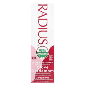 Radius Pasta de dente em gel orgânico USDA, não tóxica, projetada para melhorar a saúde das gengivas e reduzir o risco de doenças gengivais, vermelho, cardamomo de cravo, 85 g