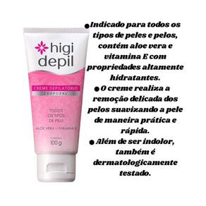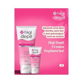 Creme Depilatório Para Corpo Aloe Vera E Vitamina E Higi Depil Indicado para todos os tipos de peles e pelos, contém aloe vera e vitamina E com propriedades altamente hidratantes. O creme realiza a remoção delicada dos pelos suavizando a pele de maneira prática e rápida. Além de ser indolor, também é dermatologicamente testado. Chega de sofrer com pinças, cera quente ou lâminas O Creme Facial Depilatório Higi Depil é a solução ideal para remover os pelos indesejados do rosto de forma rápida, eficaz e indolor. Sua fórmula suave, desenvolvida especificamente para a pele delicada do rosto, garante uma pele macia e lisa em poucos minutos, sem agredir ou irritar. Eficácia e Suavidade em um Único Produto: Fórmula Suave: Especialmente formulado para a pele sensível do rosto buço, queixo, costeletas , o creme Higi Depil age de forma delicada, minimizando o risco de vermelhidão e irritação. Depilação Indolor e Rápida: Esqueça a dor da cera e o risco de cortes da lâmina. A aplicação é simples e o produto age em poucos minutos, dissolvendo os pelos da superfície da pele. Pele Macia e Hidratada: Sua composição inclui agentes que hidratam e cuidam da pele durante o processo, deixando-a com uma sensação de maciez e sedosidade após a remoção. Resultado Duradouro: A remoção dos pelos é feita na altura da pele, proporcionando uma pele lisa por mais tempo do que a depilação com lâmina. Praticidade para o Dia a Dia: A embalagem prática e o modo de uso descomplicado permitem que você faça a depilação no conforto da sua casa, economizando tempo e dinheiro. INSTRUÇÕES DE USO: Faça o teste de sensibilidade antes de utilizar o produto. Aplique uma pequena quantidade do creme depilatório facial na dobra do braço e deixe agir por 10 minutos. Não friccionar. Remover o creme com uma esponja ou toalha umedecida em água morna. Aguardar 24 horas. Se a pela não ficar vermelha ou irritada, prosseguir com o uso do produto. Precauções Importantes: Teste de Sensibilidade: Faça um teste de sensibilidade antes de usar o produto em toda a área. Uso Externo: Produto para uso externo. Evite Contato com os Olhos: Em caso de contato acidental, enxágue com água abundante e procure um médico. Restrições: Não utilize em pele irritada, lesionada ou com feridas. Com o Creme Facial Depilatório Higi Depil, você tem a de uma pele lisa, bem cuidada e livre de pelos, com toda a segurança e praticidade que o seu rosto merece. Marca: Não Informado Ean: 7898522373305