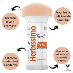 Experimente o toque suave e a proteção eficaz do Creme Desodorante Twist Vanilla. Formulado para proporcionar frescor e conforto ao longo do dia, este desodorante combina a fragrância deliciosa da baunilha com uma fórmula cuidadosamente desenvolvida para manter a pele das axilas seca e livre de odores. Desenvolvido para proporcionar proteção contra odores e umidade, mantendo você fresca e confiante durante todo o dia. A textura leve e cremosa do produto se espalha facilmente, garantindo uma aplicação confortável e uniforme.