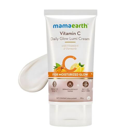 Procurando por uma pele hidratada super macia com um brilho de marcador? Você pode pular o uso de dois produtos para obter aquele brilho agora. Meet Vitamin C Daily Glow Lumi Cream - um iluminador hidratante de dupla função, tudo em um! Feito para dar à sua pele um brilho iluminado, o creme Lumi cria um brilho iluminado por dentro, momentos após a aplicação. Basta deslizar, misturar e embelezar seu visual diário. Embalado com os benefícios da vitamina C e açafrão, ajuda a suavizar e hidratar a pele, deixando-a úmida e hidratada. A vitamina C é carregada com nutrientes que ajudam a hidratar sua pele enquanto a cúrcuma revive o brilho natural da sua pele. Isso não é tudo. O creme Mamaearth com vitamina C Daily Lumi também é certificado pela Made Safe, o que significa que não contém toxinas, apenas a bondade da natureza.