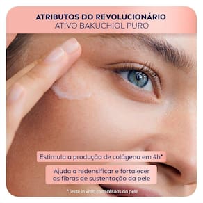 Com 2 tipos de ácido hialurônico, hidrata e suaviza, reduzindo rugas profundas. Oferece proteção solar FPS 30, benefício único. Estudos indicam que estimula o colágeno em 4 horas, enquanto fortalece a pele, redefine contornos faciais e visivelmente diminui rugas profundas.
