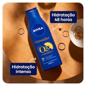 Modo de usar: Com a pele limpa e seca, aplique o Creme Hidratante Corporal Firmador Nivea Q10 Vitamina C 200ml sobre as áreas desejadas, massageando suavemente em movimentos circulares. Use diariamente para garantir os resultados.