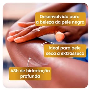 O Creme Hidratante Corporal Nivea Beleza Radiante Cuidado Intenso promove 48 horas de hidratação profunda e foi especialmente desenvolvido para a beleza da pele negra. Auxilia na reparação das áreas ressecadas aliviando a descamação da pele causada pelo ressecamento, realça o brilho natural e uniformiza o tom pele e reduz a aparência de marcas escurecidas. Possui fórmula enriquecida com 5 óleos naturais, abacate, oliva, soja, macadâmia e amêndoas, além de vitaminas E,B3 e Pro Vit B5.