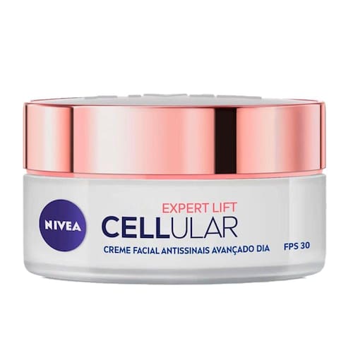 O Creme Hidratante Facial Nivea Antissinais Cellular Lift Expert Dia atua nos níveis celulares mais profundos da pele para revelar uma pele com aparência mais jovem. Possui uma poderosa combinação de ativos anti-idade com bakuchiol puro, ativo revolucionário estimula a produção de colágeno e ajuda a redensificar e fortalecer as fibras de sustentação da pele. Além disso, possui 2 tipos de ácido hialurônico que hidrata e suaviza a pele, reduzindo visivelmente as rugas profundas. Conta ainda com proteção solar FPS 30.