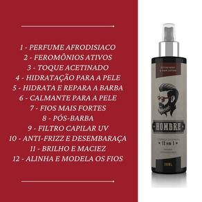 Creme Loção Pós Barba 12 Em 1 Fórmula Exclusiva e Inovadora Loção Creme em Spray Masculina Super Cheirosa Hombre 200ml com 12 Funções em um produto. Doze motivos para usar Hombre: 1 - Perfume Afrodsíaco. 2 - Feromônios Ativos. 3 - Toque Acetinado. 4 - Hidratação para a Pele. 5 - Hidrata e repara a Barba. 6 - para a Pele. 7 - Fios mais Fortes. 8 - Pós-Barba. 9 - Filtro Capilar UV. 10 - Anti-Frizz e Desembaraça. 11 - Brilho e Maciez. 12 - Alinha e modela os Fios Provada com números, a vaidade masculina já é uma realidade. Para um homem moderno, ser um gentleman não é apenas uma questão de boa higiene, ser educado e cordial. Uma boa aparência também é fundamental, então criamos para você Hombre, o elixir do cuidado masculino. Enriquecido com óleo de amêndoas doces, pantenol e óleo de argan, foi desenvolvido para intensificar a beleza dos cabelos e da pele. Além de todo o apelo sensual, Hombre destaca-se pela sua praticidade em conter em um único produto mais de 12 doze razões para usá-lo. Use no corpo para hidratar e perfumar. Deixe seu cabelo com mais brilho e vida. Mantenha sua barba e bigode macios e bem cuidados diariamente. Um gentleman cuida de sua aparência assim como da sua saúde com o mesmo carinho e dedicação. Com fragrância sofisticada, deixa o homem mais sedutor, atraente e conquistador. Parte da fragrância de Hombre só é revelada com a liberação de endorfina porque está encapsulada e a melhor maneira de liberar endorfina é pela relação sexual. Nunca esqueça que Hombre é moderno assim como você, por isso é tão eficiente. Esta fragrância é uma concentração de muita sensualidade e sedução. Sua formulação é composta por feromônios ativos que vão estimular seu lado mais homem, tornando-o poderoso e charmoso. Lembre-se sempre que um verdadeiro gentleman não tira folga dos cuidados pessoais, não abra mão do Elixir Hombre. PRINCIPAIS BENEFÍCIOS Perfume afrodsíaco com feromônios ativos. Fórmula inovadora enriquecida com óleo de amêndoas doces, pantenol e óleo de argan. Cuidado para sua pele, cabelo, barba e bigode. Embalagem spray com prática aplicação do produto. Desenvolvido com exclusividade para o público masculino. Prático, usual e objetivo assim como os homens. Fórmula exclusiva 12 em 1. Modo de usar: Aplique sobre a pele e massageie levemente para melhor absorção do produto. Repita a aplicação se desejar. Nos cabelos aplique uma pequena quantidade do produto sobre os fios molhados ou secos. Sem enxágue. Na barba aplique uma pequena quantidade do produto, sem enxágue. Após fazer a barba aplique uma pequena quantidade na pele e massageie levemente para melhor absorção do produto. Principais Tags de Pesquisa: Creme hidratante para homem, hidratante de pele masculino, melhor hidratante masculino, creme corporal masculino mais cheiroso, creme hidratante homem, creme facial para homens, loção barba, locao pos barba, loção de barbear