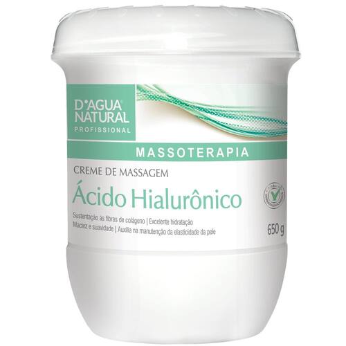 Com o processo natural de envelhecimento, exposição à radiação solar, poluição e fatores genéticos, o ácido hialurônico produzido pelo organismo diminui, causando ressecamento da pele e diminuição da sua elasticidade. O creme para massagem corporal com ácido hialurônico, promove sustentação às fibras de colágeno e hidratação devido a sua alta capacidade de retenção de água. Atua auxiliando na manutenção da elasticidade da pele, além de auxiliar no tratamento dos primeiros sinais de envelhecimento da pele do corpo. Possui emolientes de alta afinidade com a pele, que devolvem a maciez e a suavidade. Livre de insumos de origem animal e parabenos.