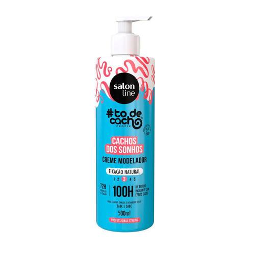 O Creme Modelador Salon Line Cachos Dos Sonhos Fixação Natural 500ml foi desenvolvido especialmente para o tratamento e definição dos cabelos ondulados, cacheados e crespos. O creme modelador é indicado para fios de texturas média ou grossa. Sua fórmula possui provitamina B5 e queratina vegetal. Com ação extracondicionante que promove 100 horas de brilho radiante, fixação flexível dos fios, desembaraço e controle do frizz. Além disso, garante proteção térmica contra as ferramentas de calor.