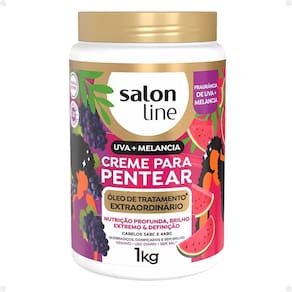 O Creme Para Pentear Salon Line Óleo de Tratamento Extraordinário Uva + Melancia 1kg é ideal para cabelos ondulados, cacheados e crespos que precisam de nutrição profunda e brilho extremo. Sua fórmula contém ativos poderosos como óleo de uva e melancia, que hidratam e fortalecem os fios, além de controlar o frizz e proporcionar definição duradoura.