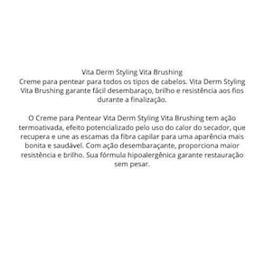 Vita Derm Styling Vita Brushing Creme para pentear para todos os tipos de cabelos. vita Derm Styling Vita Brushing garante fácil desembaraço, brilho e resistência aos fios durante a finalização.