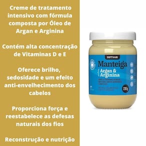 Creme Para Reparação Capilar Profunda Com Argan E Arginina Transforme Seus Cabelos com a de Argan e Arginina Soft Hair: O Segredo para Fios Saudáveis e Brilhantes Você está à procura de uma solução eficaz para transformar seus cabelos danificados e sem vida Conheça a poderosa sinergia da de Argan e Arginina, ingredientes que estão revolucionando o mundo dos cuidados capilares. Reconstrução e Nutrição: Descubra os Benefícios da de Argan e Arginina Soft Hair para Seus Cabelos O Poder do Óleo de Argan O Óleo de Argan é rico em ácidos graxos essenciais, vitamina D, E e antioxidantes, proporcionando uma hidratação profunda e duradoura para os cabelos. Este ingrediente natural é conhecido por: 1. Hidratar e Nutrir: Penetra profundamente nos fios, restaurando a umidade e combatendo o ressecamento. 2. Fortalecer os Cabelos: Aumenta a resistência dos fios, prevenindo a quebra e as pontas duplas. 3. Dar Brilho e Maciez: Deixa os cabelos com um brilho incrível e uma textura suave. A Magia da Arginina A Arginina é um aminoácido essencial que desempenha um papel crucial na saúde capilar. Seus principais benefícios incluem: 1. Estimular o Crescimento Capilar: Melhora a circulação sanguínea no couro cabeludo, promovendo um crescimento mais rápido e saudável. 2. Reparar Danos: Fortalece a estrutura dos fios, ajudando na recuperação de danos causados por tratamentos químicos e exposição ao calor. 3. Proteger os Cabelos: Cria uma camada protetora ao redor dos fios, defendendo-os contra agressões externas. Por que Escolher a de Argan e Arginina Soft Hair Esse tratamento intensivo possui fórmula exclusiva que combina os benefícios do óleo de argan e arginina, oferecendo uma solução completa para todos os tipos de cabelo. Com uso regular, você notará: Cabelos mais fortes e resistentes Fios incrivelmente macios e brilhantes Não perca a chance de experimentar os benefícios da de Argan e Arginina Soft Hair. Compre agora e descubra como esses ingredientes poderosos podem transformar seus cabelos, deixando-os mais saudáveis, fortes e brilhantes. ANVISA PROCESSO: 25351.664163/2012-16 AUT/MS 2.01236.1 Modo de Usar: Após lavar os cabelos com o Shampoo de sua preferência, aplique e espalhe o produto uniformemente, concentrando-o do meio às pontas. Deixe agir de 5 a 10 minutos e enxágue. Finalize como de costume. Marca: Não Informado