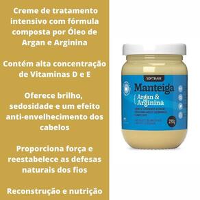 Creme Para Reparação Capilar Profunda Com Argan E Arginina Transforme Seus Cabelos com a de Argan e Arginina Soft Hair: O Segredo para Fios Saudáveis e Brilhantes Você está à procura de uma solução eficaz para transformar seus cabelos danificados e sem vida Conheça a poderosa sinergia da de Argan e Arginina, ingredientes que estão revolucionando o mundo dos cuidados capilares. Reconstrução e Nutrição: Descubra os Benefícios da de Argan e Arginina Soft Hair para Seus Cabelos O Poder do Óleo de Argan O Óleo de Argan é rico em ácidos graxos essenciais, vitamina D, E e antioxidantes, proporcionando uma hidratação profunda e duradoura para os cabelos. Este ingrediente natural é conhecido por: 1. Hidratar e Nutrir: Penetra profundamente nos fios, restaurando a umidade e combatendo o ressecamento. 2. Fortalecer os Cabelos: Aumenta a resistência dos fios, prevenindo a quebra e as pontas duplas. 3. Dar Brilho e Maciez: Deixa os cabelos com um brilho incrível e uma textura suave. A Magia da Arginina A Arginina é um aminoácido essencial que desempenha um papel crucial na saúde capilar. Seus principais benefícios incluem: 1. Estimular o Crescimento Capilar: Melhora a circulação sanguínea no couro cabeludo, promovendo um crescimento mais rápido e saudável. 2. Reparar Danos: Fortalece a estrutura dos fios, ajudando na recuperação de danos causados por tratamentos químicos e exposição ao calor. 3. Proteger os Cabelos: Cria uma camada protetora ao redor dos fios, defendendo-os contra agressões externas. Por que Escolher a de Argan e Arginina Soft Hair Esse tratamento intensivo possui fórmula exclusiva que combina os benefícios do óleo de argan e arginina, oferecendo uma solução completa para todos os tipos de cabelo. Com uso regular, você notará: Cabelos mais fortes e resistentes Fios incrivelmente macios e brilhantes Não perca a chance de experimentar os benefícios da de Argan e Arginina Soft Hair. Compre agora e descubra como esses ingredientes poderosos podem transformar seus cabelos, deixando-os mais saudáveis, fortes e brilhantes. ANVISA PROCESSO: 25351.664163/2012-16 AUT/MS 2.01236.1 Modo de Usar: Após lavar os cabelos com o Shampoo de sua preferência, aplique e espalhe o produto uniformemente, concentrando-o do meio às pontas. Deixe agir de 5 a 10 minutos e enxágue. Finalize como de costume.