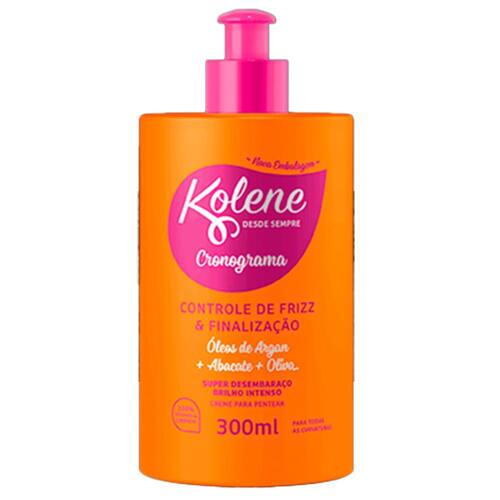 O Creme Pentear Kolene Cronograma 300ml desenvolvido especialmente para agir nos fios ressecados garantindo mais brilho e um ultradesembaraço que facilita a finalização dos cabelos. Possui nova fórmula, com ação 2 em 1, conta com o poder de 7 Óleos poderosos, que hidratam profundamente os fios. Além disso, a Linha é indicada para todos os tipos de curvatura, inclusive para fios em transição capilar.