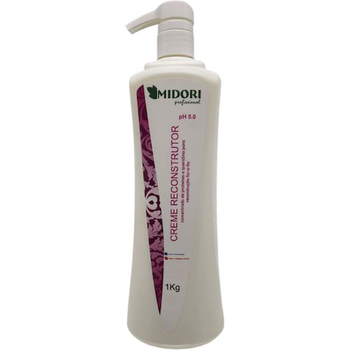 Contém 1 - creme reconstrutor midori 1kg Creme reconstrutor Concentrado de proteínas e queratina para reconstrução fio-a-fio Poderoso creme reconstrutor de cachos com hidratação perfeita proporcionando toque macio e sedoso, com redução de frizz, definindo os cachos de forma natural. Elaborado com d'pantenol, proteína do trigo, do leite e queratina que promovem cachos perfeitamente flexíveis, brilhantes e cheios de vida. Modo de aplicação: Aplique o creme reconstrutor midori mecha a mecha sobre os cabelos lavados massageando no sentido da raiz às pontas. Deixe agir por 5 minutos e enxágue em seguida retirando todo o produto. Precauções: Uso externo. Mantenha fora do alcance das crianças. Em caso de alergia a qualquer um dos Componentes da fórmula, suspenda o uso. Composição: Aqua, stearyl alcohol, glycerin, paraffinum liquidum, cyclopentasiloxane, cetyl alcohol, cyclomethicone, cetrimonium chloride, stearamidopropyl dimethylamine, quaternium-70, myristyl alcohol, alcohol, behentrimonium chloride, parfum, lactic acid, bener dimethiconol, dimethiconol, octadecyl di-t-butyl-4 hydroxyhydrocinnamate, panthenol, peg-90m, disodium edta, hydrolyzed wheat protein, benzotriazolyl dodecyl p-cresol, hydrolyzed keratin, hydrolyzed milk protein, stearic acid, methylchloroisothiazolinone / methylisothiazolinone, benzyl salicylate, citronellol, coumarin, hexyl cynnamal, linalool. Concentrado de proteínas e queratina para recontrução fio-a-fio