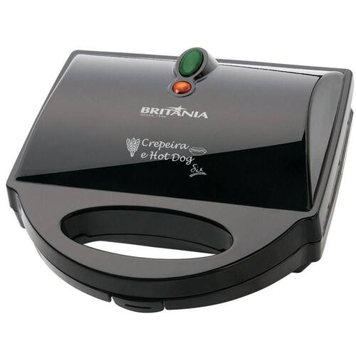Informações do Produto ? Faz 6 crepes de uma só vez; ? Rebaixo para apoio de palitos; ? Luzes indicadoras de funcionamento e aquecimento; ? Chapas com revestimento antiaderente ? Fácil de limpar; ? Prepara crepes doces e salgados; ? Aquecimento rápido; ? Pés anti-deslizantes; ? Pode ser armazenado na posição vertical; ? Trava a tampa; ? Com receitas no manual; ? Composição: Metal e Baquelite.