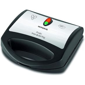 Prepara 6 crepes de uma só vez, além de outras delícias como pão de queijo, salsicha no palito, pizza no palito, queijo coalho e muito mais. Possui chapas antiaderentes, design em inox, luz indicadora dupla (vermelha e verde), alça com toque frio e trava de armazenamento.Timer