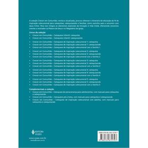A coleção Crescer em Comunhão, revista e atualizada, procura oferecer o itinerário de educação da fé de inspiração catecumenal para catequistas, catequizandos e famílias, como caminho para o encontro com Jesus Cristo. Para isso integra os elementos essenciais da Iniciação à Vida Cristã, oferecendo encontros orantes e centrados na Palavra de Deus e no Magistério da Igreja. Este livro foi pensado e preparado para atender aos jovens e aos adultos que desejam começar ou completar seu processo de iniciação cristã oferecendo um itinerário consistente em que catequista e catequizando, com base na Palavra de Deus, percorram um caminho que os leve ao amadurecimento da fé e à compreensão da vida cristã como uma opção consciente e decidida de pautar avida pelos valores cristãos.