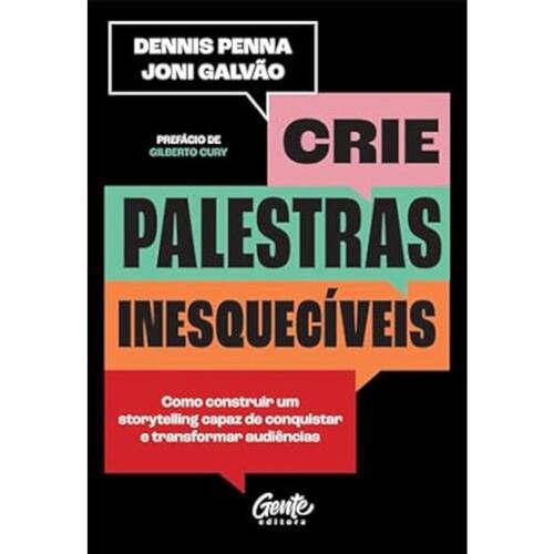 Foi a partir dessa inquietação e busca pelo storytelling perfeito que nasceu o Crie palestras inesquecíveis , fruto da união de Joni Galvão e Dennis Penna, especialistas quando o assunto é cativar a atenção de seus espectadores. Aqui, eles revelam lições importantíssimas que podem ser seguidas por todos os profissionais que discursam em público, garantindo apresentações fora de série, que expandem a consciência e ganham espaço na memória de quem estiver na plateia.