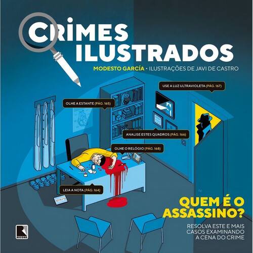 Você é capaz de desvendar um assassinato apenas analisando a cena do crime? Neste livro interativo que reúne os jogos populares de Modesto García nas redes sociais e ilustrado por Javi de Castro, desperte o detetive que há em você seguindo as pistas para solucionar o crime. Transforme-se em um verdadeiro detetive de homicídios e comece a reunir as evidências porque aqui, para desvendar o crime, você precisará de todas as suas habilidades de observação e dedução. Por que há uma garrafa quebrada no chão? A quem pertencem estas pegadas? O que a vítima queria dizer com a última mensagem que deixou? Vá juntando aos poucos as peças do quebra-cabeças para descobrir o que aconteceu e quem é o verdadeiro culpado.Crimes ilustrados vai te prender com sua inovação, criatividade e originalidade. Com doze casos aguardando solução, o leitor precisa estar com suas habilidades investigativas afiadas para desvendar o mistério.São suicídios suspeitos, assassinatos sangrentos, disputas familiares por heranças multimilionárias, crimes passionais, identidades ocultas, segredos mortais...Você aceita o desafio?