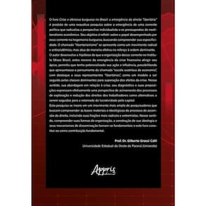 O livro Crise e ofensiva burguesa no Brasil: a emergência da direita “libertária” é produto de uma exaustiva pesquisa sobre a emergência de uma corrente política que radicaliza a perspectiva individualista e os pressupostos do neoliberalismo econômico. Seu objetivo é refletir sobre o papel desempenhado por essa corrente na hegemonia burguesa, buscando compreender sua especificidade. O chamado “libertarianismo” se apresenta como um movimento radical e antissistêmico, mas atua de maneira efetiva no reforço à ordem dominante. O autor desenvolve a hipótese de que a organização dessa corrente no Instituto Mises Brasil, antes mesmo da emergência da crise financeira atingir seu ápice, permitiu que tenha potencializado sua ação e influência, possibilitando que apresentasse o pensamento da chamada “escola austríaca de economia”, com destaque a seus representantes “libertários”, como um modelo a ser seguido pelas classes dominantes para superação dos efeitos da crise. Nesse sentido, sua abordagem em relação à crise, seu diagnóstico e suas proposições expressam efetivamente uma perspectiva de acirramento dos processos de exploração e redução dos direitos dos trabalhadores como alternativas a serem seguidas para a retomada da lucratividade pelo capital. Esta pesquisa se insere em um movimento mais amplo de pesquisadores que buscam compreender as bases materiais e ideológicas do processo de ascensão da direita, incluindo suas frações mais radicais e extremistas. Nesse sentido, compreender suas formas de organização, a construção de sua ideologia e seus mecanismos de disseminação tornam-se fundamentais e este livro constitui-se como contribuição fundamental. Prof. Dr. Gilberto Grassi Calil Universidade Estadual do Oeste do Paraná (Unioeste)