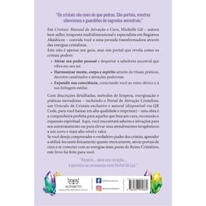 “Os cristais são mais do que pedras. São portais, mestres silenciosos e guardiões de segredos ancestrais.” Em Cristais: Manual de Ativação e Cura, Michelle Gil – autora best-seller, terapeuta multidimensional e especialista em Registros Akáshicos – convida você a uma jornada transformadora através das energias cristalinas. Este não é apenas um guia, mas um portal que revela como os cristais podem: • Ativar seu poder pessoal e despertar a sabedoria ancestral que vibra em seu ser. • Harmonizar mente, corpo e espírito através de rituais práticos, decretos canalizados e ativações poderosas. • Expandir sua consciência, conectando você ao reino dévico e à sua linhagem estelar. Com descrições detalhadas, métodos de limpeza, energização e práticas inovadoras – incluindo o Portal de Ativação Cristalino, um Oráculo de Cristais exclusivo e autoral (disponível via QR Code para baixar em alta qualidade e imprimir) – esta obra é a companheira perfeita para aqueles que buscam cura, reconexão e expansão espiritual. Aqui, você encontrará saberes e ativações para seu autotratamento ou para elevar seus atendimentos terapêuticos a um novo e mais alto nível e valor. Se você deseja compreender o verdadeiro poder dos cristais, aprender a utilizá-los tanto fisicamente quanto etericamente, ativar portais de cura e se conectar com as energias mais puras do Reino Cristalino, este livro foi feito para você. "Respire... abra seu coração... e permita-se atravessar este Portal de Luz."