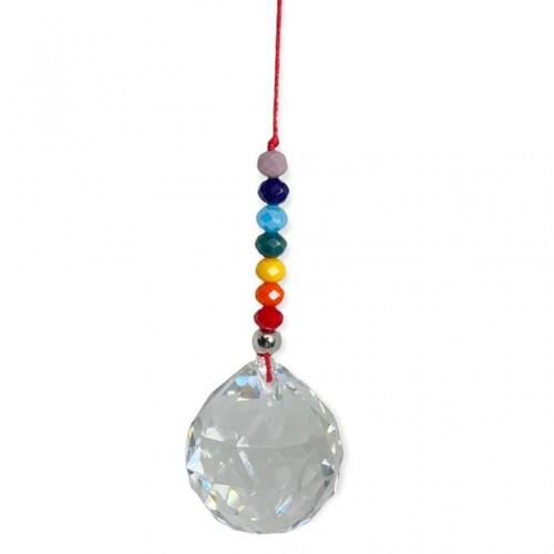 Cristal Multifacetado Feng Shui com Cordão- Escolha a Cor Cor: 4 cm e 7 Contas Coloridas Cristal Multifacetado Feng Shui com Cordão- Escolha a Cor