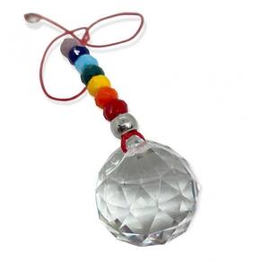 Cristal Multifacetado Feng Shui com Cordão- Escolha a Cor Cor: 3 cm e 7 Contas Coloridas Cristal Multifacetado Feng Shui com Cordão- Escolha a Cor