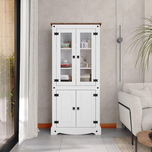 Cristaleira possui 04 Portas. Produzido inteiramente com a madeira Pinus(reflorestada), dobradiças de pressão e pés de madeira. É a cristaleira ideal para trazer mais sofisticação ao ambiente, além de elegante é super fácil de limpar. Móvel para pessoas exigentes. Acabamento da Porta: Pintura Acabamento da Prateleira: Pintura Acabamento dos Pés: Pintura Altura dos Pés: 11,2 cm Ambiente Principal: Sala de Jantar Complexidade da Montagem: Baixa: pode ser montado por uma pessoa sozinha Cor: Branco/Roble Cor do Produto: Branco/Roble Cor dos Pés: Branco Escala de Brilho: Semi-Brilho Escala de Brilho da Porta: Semi-Brilho Espessura do Vidro: 3 mm Itens Inclusos: 01 Cristaleira e 01 Manual de Montagem Manual de Montagem e Instalação: https://product-hub-prd.madeiramadeira.com.br/898227/documents/4a72143f-c22d-4cf3-9e49-5c1640a2cadd1847293alteraCAo102258.pdf Material da Porta: Madeira Maciça Material da Prateleira: Madeira Maciça Material Principal: Madeira Maciça Necessita Montagem: Sim Origem do Produto: Nacional Peso: 38 kg Peso Máximo por Prateleira: 10 kg Porta Taças: Não Possui Adega: Não Possui Espelho: Não Possui Gavetas: Não Possui iluminação: Não Possui Nicho: Não Possui Pés: Rodapé Possui Portas: Sim Possui Prateleiras: Sim Possui Vidro: Sim Quantidade de Prateleiras: 03 Prateleiras Recomendações de Uso, Manutenção e Limpeza: Limpeza com flanela umedecida em água. Sapatas Niveladoras: Não Sistema de Montagem: Parafusos, pregos e cavilhias Suporta Até (kg): 30 kg Tipo de Dobradiça/Corrediça da Porta: Metálica Tipo de Madeira Maciça: Pinus Tipo de Porta: Bater Tipo de Puxador da Porta: Externo Marca: MOVEIS ADENAU