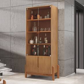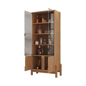 Características: Estrutura em MDF/MDP Pintura com acabamento UV Tampo redondo em MDF 04 Portas articuladas com dobradiças metálicas de amortecimento Vidro temperado Portas usinadas com detalhe curvo Puxadores de alça em couro sintético Pés em madeira maciça