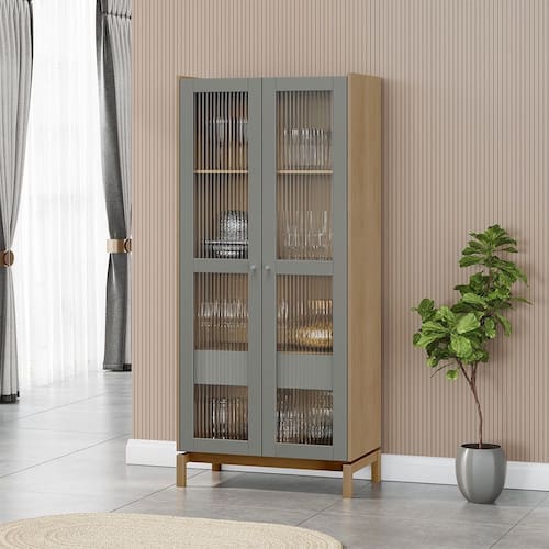Cristaleira 1,80 2 Portas 1 Gaveta Barcelona Madeira Maciça 2157VZ Oak Ferrolack Finestra - Cinza Claro