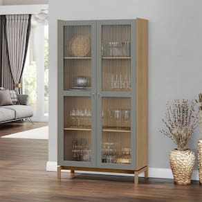 Características: Estrutura em Madeira Maciça de Pinus Pintura Acetinada Verniz PU e UV 02 Portas Dobradiças com Amortecimento Puxadores Conico de Metal Prateleiras em Madeira Maciça Pés Flutuantes Vidro Canelado Incolor Peso Máximo Suportado pelas Prateleiras 10kg Distribuídos Isolamento de Peças com Manta de Polietileno Expandido (Isomanta)