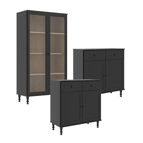 Deixe seu ambiente mais bonito e organizado com este conjunto Cristaleira + 2 Aparadores Ditália. A cristaleira possui 2 portas de vidro e 4 prateleiras resistentes, perfeita para louças, livros ou objetos decorativos.