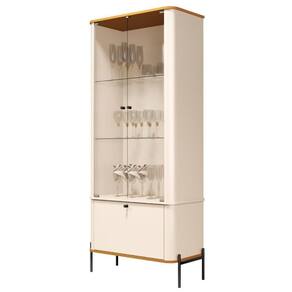 Ela conta com 2 portas e 2 prateleiras em vidro, 1 gaveta, 4 pés e 3 puxadores em metal.