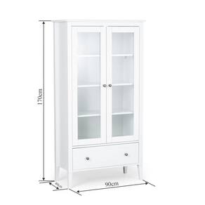 A Cristaleira Vogue, possui os pés em madeira maciça certificada FSC, dando uma estrutura forte e durável para a cristaleira. Possui duas portas com vidro, e internamente conta com 4 prateleiras em MDF, onde você poderá expor suas louças, taças e demais objetos, dando um requinte para sua sala de jantar. As portas contam ainda com dobradiça soft close, que garantem um fechamento suave da porta, não permitindo que ela bata. Possui uma gaveta com corrediça telescópica, que possibilita a abertura total da gaveta, onde você pode guardar toalhas e guardanapos, deixando tudo organizado.