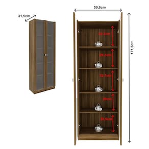 A Cristaleira Catarina é o móvel ideal para compor com elegância sua sala de jantar. Com um design clássico e sofisticado, ela é perfeita para exibir suas taças, louças e cristais com grande estilo. Possui 2 portas de vidros e 4 prateleiras internas com 30cm de profundidade que suportam até 12kg cada, o equilíbrio perfeito entre funcionalidade e requinte para transformar qualquer espaço da casa. Perfeita, não é mesmo? Estrutura em MDP e acabamento em BP. Imagem meramente ilustrativa. A decoração do ambiente não acompanha o produto, produto é entregue desmontado, novo, acompanha nota, manual de montagem e ferragem. Acabamento da Porta: BP Acabamento da Prateleira: BP Ambiente Principal: Cozinha codigo_ean: 7900288287779 Complexidade da Montagem: Média: pode ser montado por mais de uma pessoa e/ou necessite de maior conhecimento para montagem Cor: Nogal Cor da Porta: Marrom Cor do Produto: Nogal Cor dos Pés: Marrom Escala de Brilho: Semi-Brilho Escala de Brilho da Porta: Semi-Brilho Informações Complementares: 12kg cada prateleira Itens Inclusos: 1 Cristaleira, Kit Ferragens e Manual de Montagem Linha ou Coleção: Catarina Manual de Montagem e Instalação: https://product-hub-prd.madeiramadeira.com.br/471638659/documents/a8e8c621-09d1-4de7-ac49-07e5412250ee33228376417628782175254.pdf Marca: Tecno Mobili Material da Porta: MDP Material da Prateleira: MDP Material Principal: MDP Necessita Montagem: Sim Origem do Produto: Nacional Peso: 30 kg Peso Máximo por Prateleira: 12 kg Porta Taças: Não Possui Adega: Não Possui Espelho: Não Possui Gavetas: Não Possui iluminação: Não Possui Nicho: Não Possui Pés: Não Possui Portas: Sim Possui Prateleiras: Sim Possui Vidro: Não Quantidade de Prateleiras: 04 Prateleiras Recomendações de Uso, Manutenção e Limpeza: Para uma limpeza mais efetiva, utilizar apenas pano macio umedecido e sabão neutro. Não utilizar produtos abrasivos. Sistema de Montagem: Sim. Aconselhamos que a montagem seja feita por um profissional. Forre o chão com o próprio papelão de nossas embalagens para evitar danos e arranhões e monte o móvel deitado de costas para cima. Após montado não expor o móvel a fonte de calor ou umidade. Suporta Até (kg): 60 kg Tipo de Dobradiça/Corrediça da Porta: Alumínio Tipo de Porta: Abrir Tipo de Puxador da Porta: Externo