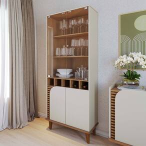 Adicione um toque de elegância e sofisticação ao seu ambiente com a Cristaleira Ewa. Seu design diferenciado combina linhas orgânicas e pés de madeira maciça, criando um visual harmônico e atemporal. Conta com 4 portas, sendo duas delas de vidro temperado (5mm) proporcionando uma visão clara do interior, onde um compartimento especial acomoda até 5 garrafas de vinho, garantindo praticidade e requinte. Os detalhes ripados e as quinas arredondadas na base agregam charme e personalidade à peça, enquanto os puxadores dourados trazem um toque sofisticado ao equilíbrio entre o estilo retrô e contemporâneo. Transforme sua decoração com um móvel que alia funcionalidade e design sofisticado em cada detalhe! Garanta já a sua e renove seu espaço com muito estilo!