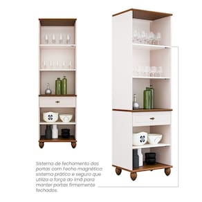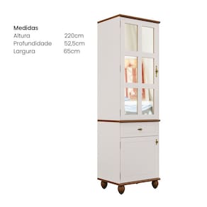 Cristaleira Adega Retrô 2P 1G a escolha madeira maciça reflorestada para confecção do tampo e da base, com 2,5cm de espessura, não apenas assegura a resistência e longevidade da peça, mas também evidencia uma atenção especial com o meio ambiente. O acabamento em laca, elevam o nível de sofisticação do design. Ademais, a aplicação de pintura não tóxica garante a segurança dos usuários, preservando a finura estética do móvel. Os puxadores e dobradiças, com textura de ouro envelhecido, introduzem um charme nostálgico. Acabamento da Porta: Pintura UV Acabamento da Prateleira: Pintura UV Acabamento dos Pés: Verniz Altura dos Pés: 10,5 cm Altura Máxima dos Pés: 10.5000 Ambiente Principal: Sala de Jantar codigo_ean: 7900288227300 Complexidade da Montagem: Média: pode ser montado por mais de uma pessoa e/ou necessite de maior conhecimento para montagem Cor: Off White Cor do Produto: Off White Escala de Brilho: Semi-Brilho Escala de Brilho da Porta: Semi-Brilho Espessura do Vidro: 3 mm Itens Inclusos: 1 Cristaleira, Kit Ferragens e Manual de Montagem Linha ou Coleção: Joy Manual de Montagem e Instalação: https://product-hub-prd.madeiramadeira.com.br/875241690/documents/c3a4235c-b148-48ad-b36f-8b1c273b0e64bc14c05131179b6b1757102607.pdf Marca: Móveis Serpil Material da Porta: MDF Material da Prateleira: MDF Material Principal: MDF Necessita Montagem: Sim Origem do Produto: Nacional Peso: 60 kg Peso Máximo por Gaveta: 7 kg Peso Máximo por Prateleira: 30 kg Possui Adega: Não Possui Espelho: Não Possui Gavetas: Sim Possui iluminação: Não Possui Nicho: Não Possui Pés: 04 Possui Portas: Sim Possui Prateleiras: Sim Possui Vidro: Sim Quantidade de Gavetas: 01 Gaveta Quantidade de Prateleiras: 03 Prateleiras Recomendações de Uso, Manutenção e Limpeza: Use um pano macio levemente umedecido. Não utilizar produtos abrasivos. Sapatas Niveladoras: Sim Sistema de Montagem: Parafusos, cavilhas, dobradiças Suporta Até (kg): 150 kg Tipo de Corrediça da Gaveta: Metálica Telescópica Tipo de Dobradiça/Corrediça da Porta: Metálica Tipo de Porta: Abrir Tipo de Puxador da Porta: Externo