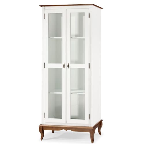 60300 Linz Móveis é a peça ideal! Um móvel usual e elegante que pode ser incorporado a qualquer tipo de ambiente, que certamente dará um toque requintado a seu cômodo, conta com duas portas em vidro que permitem exibir a sua organização interior e três espaçosas prateleiras que acomodarão perfeitamente seus objetos. Produzida em Madeira Maciça para tons amadeirado em verniz e MDF nos tons coloridos com acabamento laca, materiais de alta qualidade e durabilidade, juntamente com os pés também em madeira maciça com acabamento em verniz, no estilo Luis XV garantem mais estabilidade e resistência para você usufruir dessa cristaleira rústica por muito tempo.