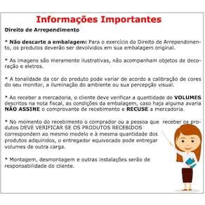 A tonalidade da cor do produto pode variar de acordo a calibração de cores do seu monitor, a iluminação do ambiente ou sua percepção visual.