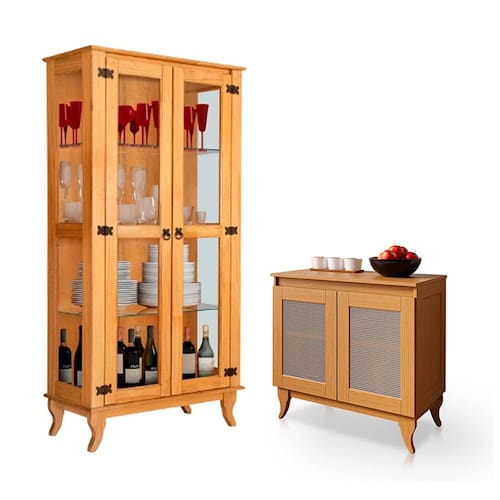 A Cristaleira 2 Portas e o Balcão Buffet 2 Portas 100% Madeira Lina formam um conjunto sofisticado e funcional para sua casa. Produzidos em madeira maciça, oferecem alta durabilidade e resistência, sendo peças pensadas para acompanhar sua família por muitos anos. A cristaleira conta com portas de vidro que destacam suas louças e taças, trazendo charme e elegância ao ambiente. Já o balcão buffet complementa com amplo espaço interno para organizar utensílios, bebidas ou objetos decorativos. O design clássico, aliado ao acabamento refinado, garante versatilidade para combinar com diferentes estilos de decoração, tornando sala de jantar ou estar ainda mais acolhedora e convidativa.