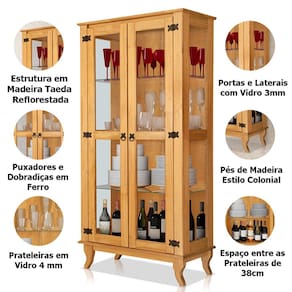 Características da Cristaleira de Madeira Maciça 2 Portas de Vidro Luma: