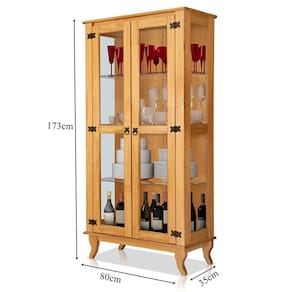 Dimensões da Cristaleira de Madeira Maciça 2 Portas de Vidro Luma: