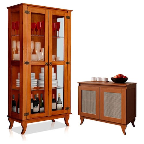 A Cristaleira 2 Portas e o Balcão Buffet 2 Portas 100% Madeira Lina formam um conjunto sofisticado e funcional para sua casa. Produzidos em madeira maciça, oferecem alta durabilidade e resistência, sendo peças pensadas para acompanhar sua família por muitos anos. A cristaleira conta com portas de vidro que destacam suas louças e taças, trazendo charme e elegância ao ambiente. Já o balcão buffet complementa com amplo espaço interno para organizar utensílios, bebidas ou objetos decorativos. O design clássico, aliado ao acabamento refinado, garante versatilidade para combinar com diferentes estilos de decoração, tornando sala de jantar ou estar ainda mais acolhedora e convidativa.