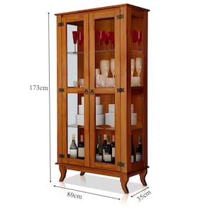 Dimensões da Cristaleira de Madeira Maciça 2 Portas de Vidro Luma: