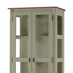 As 2 portas e laterais com detalhes em vidro proporcionam uma visão encantadora dos itens armazenados.