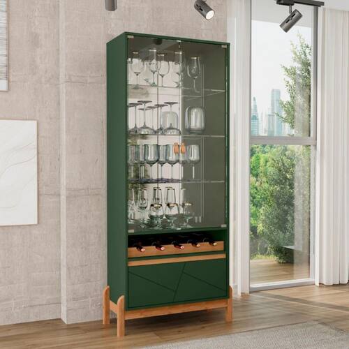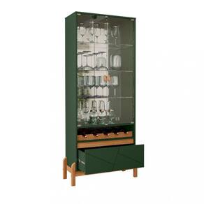 Características: Tampo e laterais em MDP de 15mm Frente de Gaveta de MDF usinada 2 Porta de vidro temperado de 4mm 3 Prateleiras de vidro temperado de 4mm 1 Gaveta Corrediças telescópicas 4 Pés de madeira maciça Puxador de alça em material ecológico Contém adega para 5 garrafas
