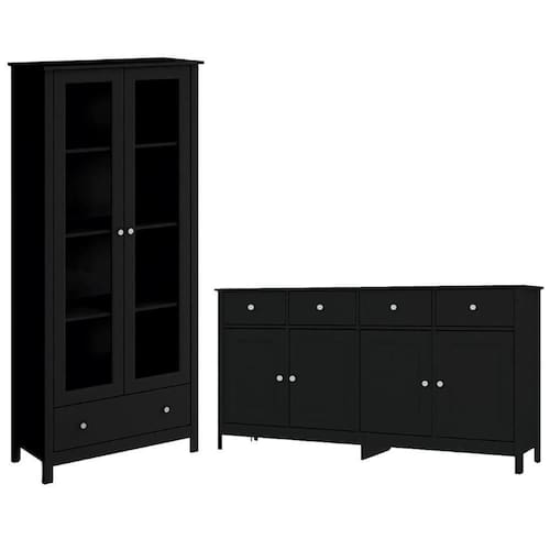 Modelo: Cristaleira 2 Portas Vidro E Balcao Buffet 4 Portas Preto Dtall