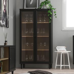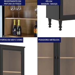 Cristaleira 2 Portas Vidro Pés Madeira 151x80 Cm E957 Preto Dtall Preto