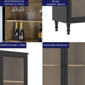 Modelo: Cristaleira 2 Portas Vidro Pés Madeira 151x80 cm E957 Dtall
